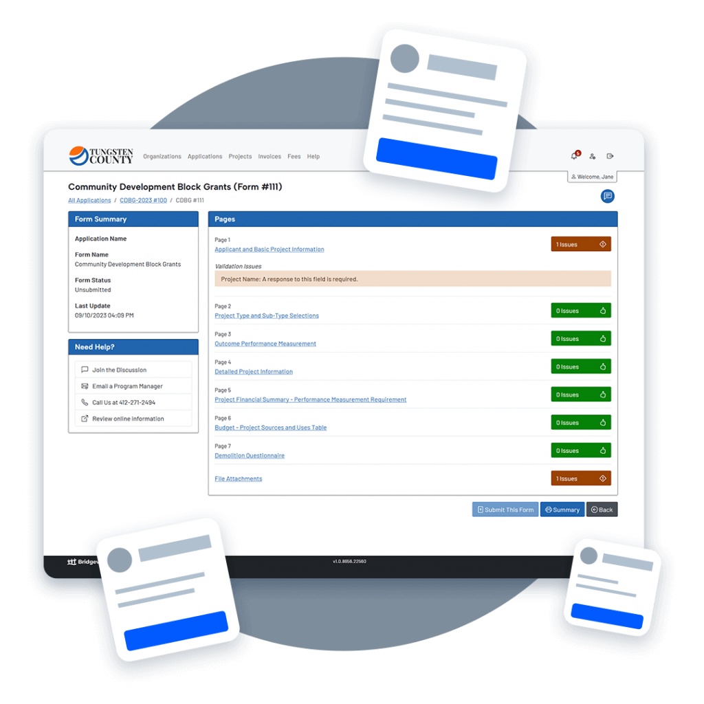 The Bridgeway platform makes collecting and working with your program data more efficient. Bridgeway reflects and enforces your agency's processes so that the right information goes to the right people at the right time. The platform makes it easier to collaborate with stakeholders, improves efficiency, and maximizes responsiveness.